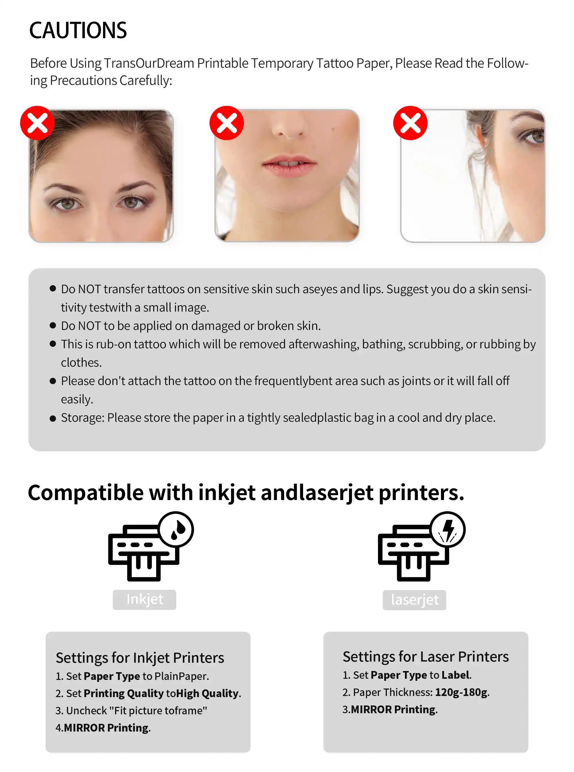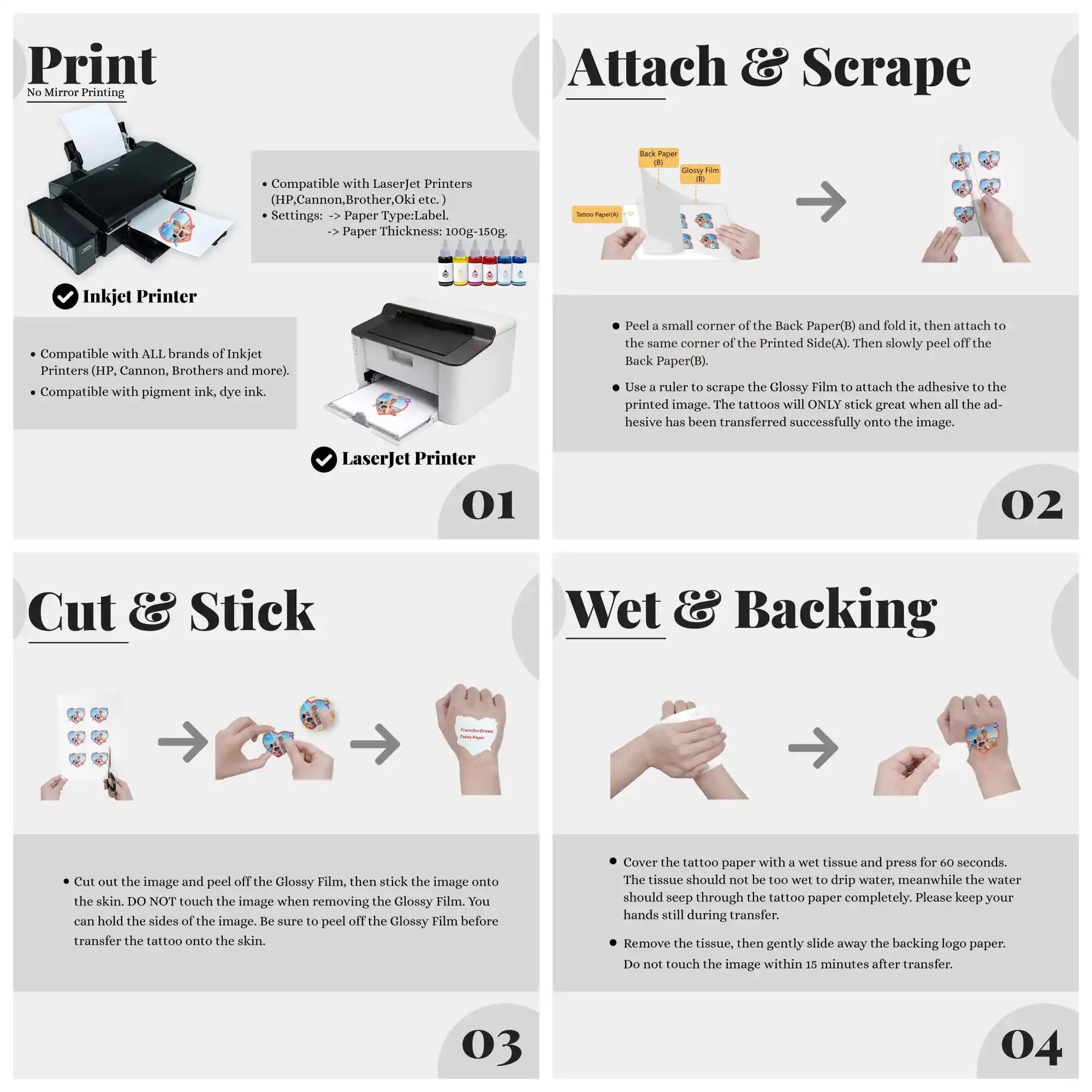 Temporary Tattoo Paper | For Inkjet and LaserJet Printers | Tattoo 1.0